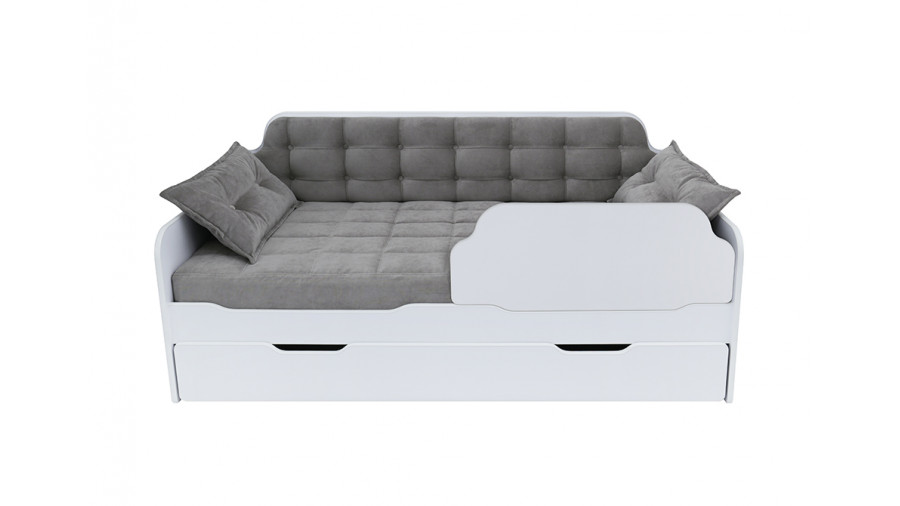 В комплект кровати Спорт Лайт входит один ящик на колесах, который может быть использован как второе спальное место. Ортопедическое основание выполнено из ламелей. Ткань для производства кровати – Вельвет Люкс и Тедди, прочная, комфортная, не скользит и не дает усадку.