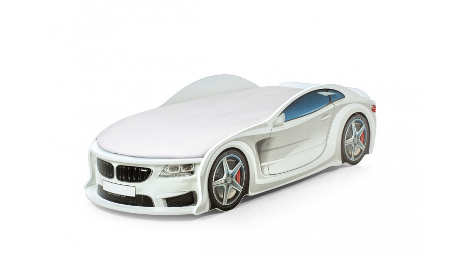 Кровать-машина «БМВ-М» белая для детей до 12 лет.