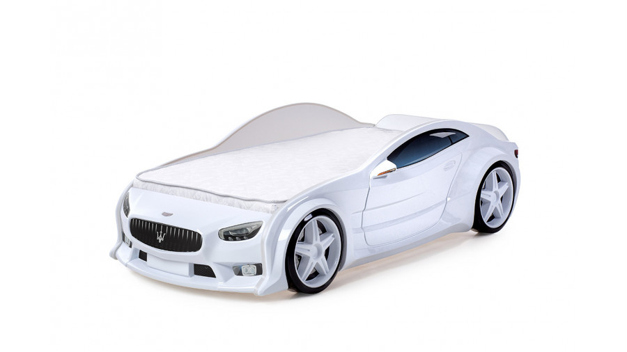 Маленьким ценителям элитной итальянской марки Maserati обязательно понравится машинка-автомобиль “Мазерати” серии EVO. Корпус кроватки оснащен 3D-элементами - бампер из формованного пластика и высокие защитные бортики, дизайн которых дополнен наклейками с изображениями автомобильных окон, дверец и прочих деталей автомобиля. Реалистичность модели на этом не заканчивается: по желанию клиента кроватка дополняется противотуманными фарами, управляемыми металлическим сенсором, красочной светодиодной подсветкой дна на пульте управления. Также отдельно вы можете приобрести комплект объемных реалистичных колес, мягкий спойлер и заказной номер для чудо-кроватки.
