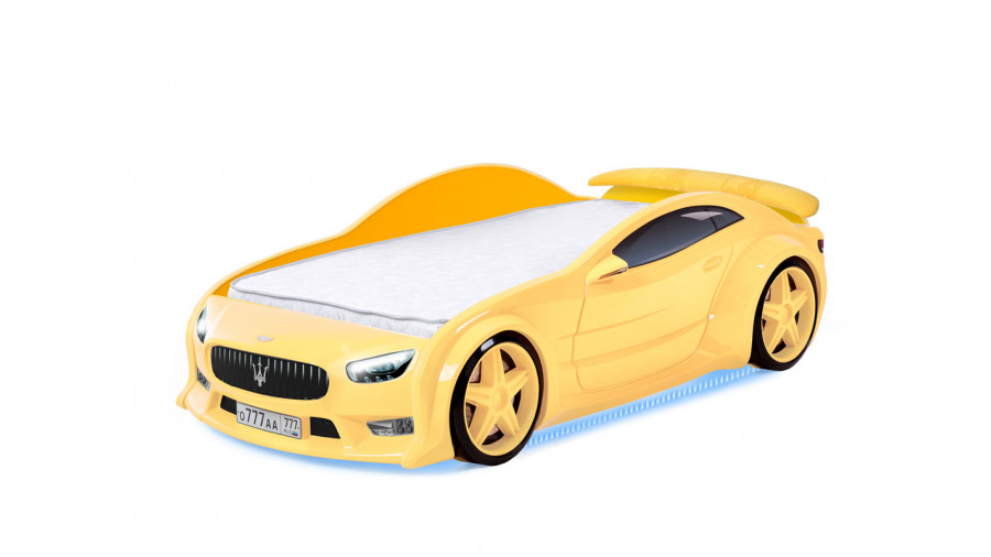 Маленьким ценителям элитной итальянской марки Maserati обязательно понравится машинка-автомобиль “Мазерати” серии EVO. Корпус кроватки оснащен 3D-элементами - бампер из формованного пластика и высокие защитные бортики, дизайн которых дополнен наклейками с изображениями автомобильных окон, дверец и прочих деталей автомобиля. Реалистичность модели на этом не заканчивается: по желанию клиента кроватка дополняется противотуманными фарами, управляемыми металлическим сенсором, красочной светодиодной подсветкой дна на пульте управления. Также отдельно вы можете приобрести комплект объемных реалистичных колес, мягкий спойлер и заказной номер для чудо-кроватки.