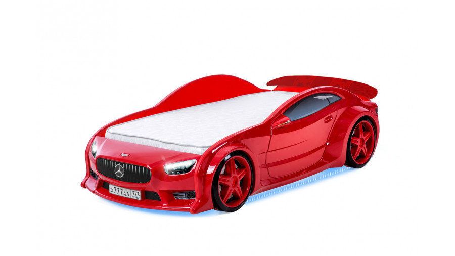 Кровать-машинка “Мерседес” серии EVO, ее правдоподобный дизайн и наличие разных интересных опций не оставят детей равнодушными. Каркас модели сделан из ЛДСП класса 0,5 и отделан формованным пластиком для эффекта 3D. Объемный бампер и борта декорированы классными наклейками. При желании кроватку-машинку можно подвергнуть “апгрейду”. Закажите для нее комплект объемных колес, LED-подсветку дна и противотуманных фар и даже именной номерной знак.