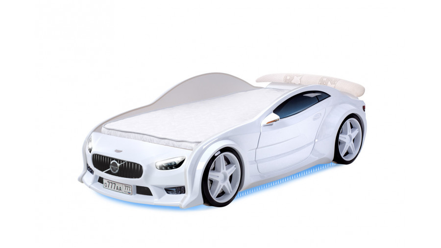 Главное отличие кроваток-машинок EVO – ортопедическое основание с ламелями, для которого предлагается три вида матрасов (однослойный эконом, трехслойный стандарт и пятислойный люкс). Все ставшие любимыми опции также доступны в серии EVO. Это многорежимная светодиодная подсветка дна на пульте управления, подсветка противотуманных фар, регулируемая сенсором, мягкий задний спойлер и именной номер с любой надписью на заказ.