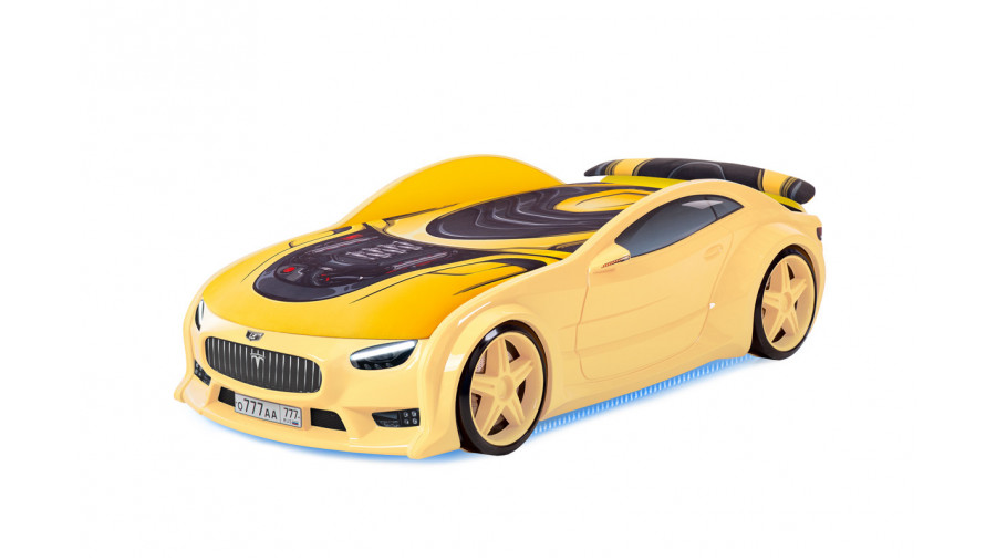 Под матрасом находится двухсекционный ящик, где удобно хранить постельное белье и игрушки. Мы можем дополнить кроватку-машинку интересными опциями: LED-подсветка дна и противотуманных фар, задний мягкий спойлер, именной номерной знак, комплект объемных колес.