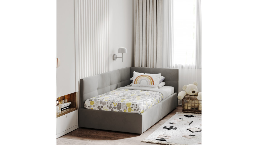 Односпальная кровать с мягким изголовьем создаст в комнате стильную и уютную обстановку, не занимая лишнего места. 1-спальная кровать имеет удобный подъемный механизм с вместительным местом для хранения пастельного белья или других вещей. Кровать-тахта с надежной ортопедической решеткой выдерживает вес до 120 кг, что делает ее универсальной для сна ребенка или взрослого человека. Кровать с высоким изголовьем и мягкой обивкой в современном дизайне впишется в любой интерьер комнаты, добавляя ей стиля и комфорта.