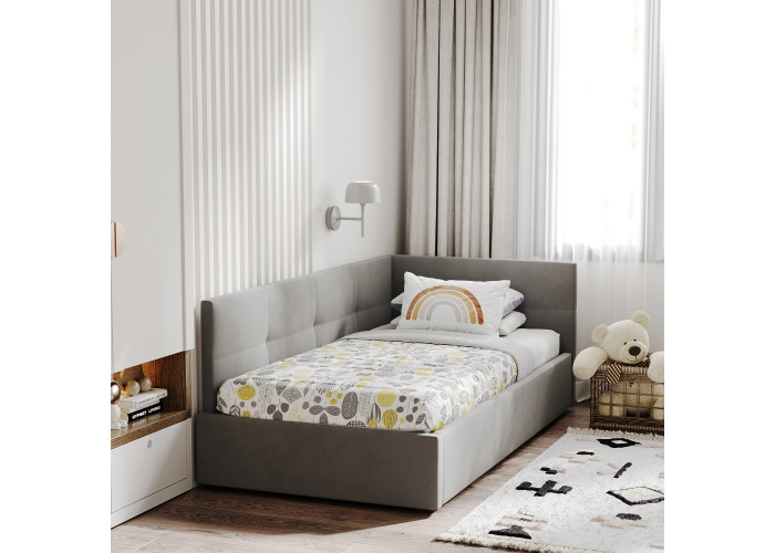 Односпальная кровать с мягким изголовьем создаст в комнате стильную и уютную обстановку, не занимая лишнего места. 1-спальная кровать имеет удобный подъемный механизм с вместительным местом для хранения пастельного белья или других вещей. Кровать-тахта с надежной ортопедической решеткой выдерживает вес до 120 кг, что делает ее универсальной для сна ребенка или взрослого человека. Кровать с высоким изголовьем и мягкой обивкой в современном дизайне впишется в любой интерьер комнаты, добавляя ей стиля и комфорта.