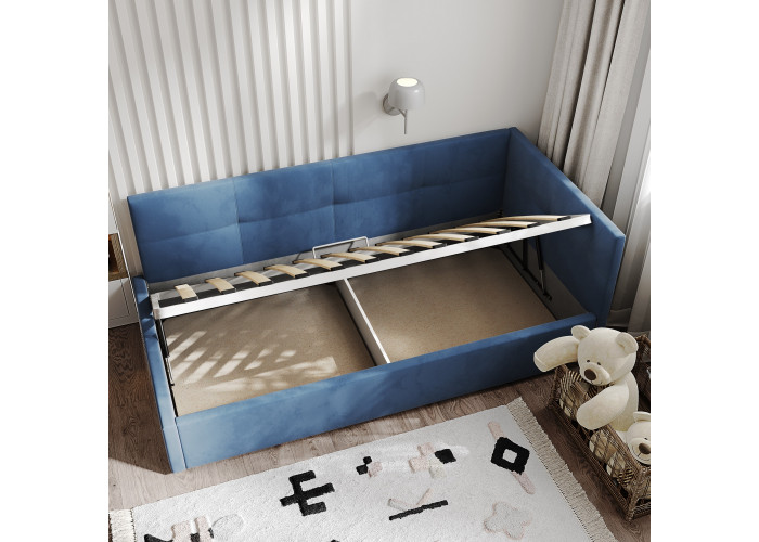 Односпальная кровать с мягким изголовьем создаст в комнате стильную и уютную обстановку, не занимая лишнего места. 1-спальная кровать имеет удобный подъемный механизм с вместительным местом для хранения пастельного белья или других вещей. Кровать-тахта с надежной ортопедической решеткой выдерживает вес до 120 кг, что делает ее универсальной для сна ребенка или взрослого человека. Кровать с высоким изголовьем и мягкой обивкой в современном дизайне впишется в любой интерьер комнаты, добавляя ей стиля и комфорта.