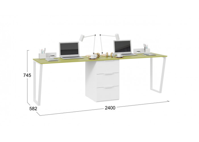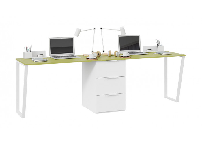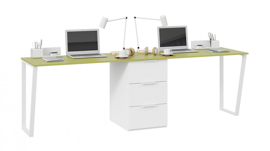 Комплект столов письменных с 1 тумбой универсальной «Порто» Белый, Зеленый