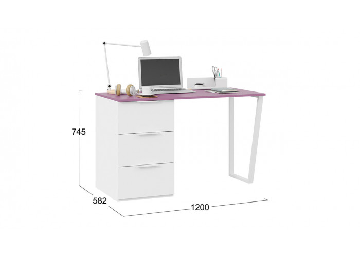 Стол письменный с тумбой универсальной «Порто» Белый, Фиолетовый