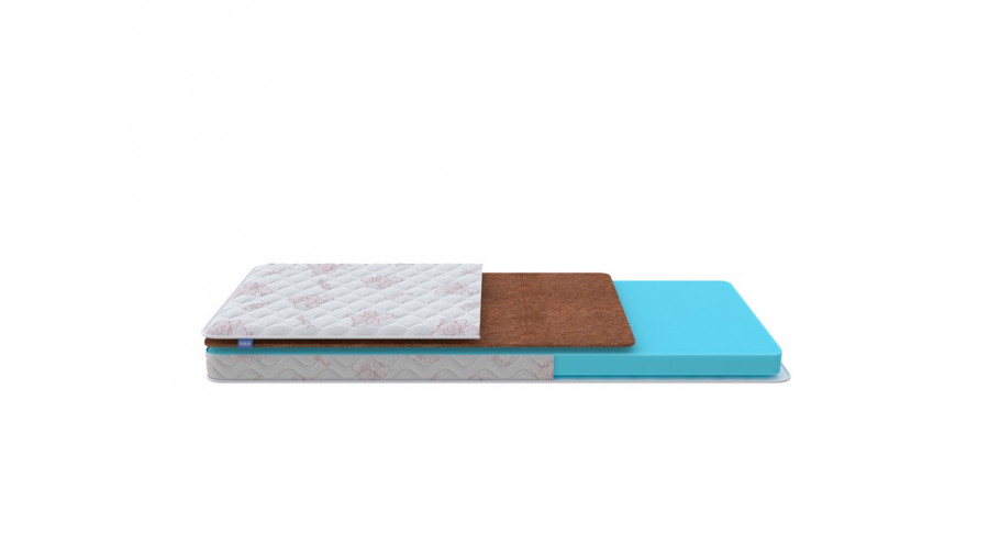 Беспружинный матрас с разной жесткостью сторон. Прочная и долговечная кокосовая койра обеспечит необходимую жесткость во время сна для правильного формирования осанки. Натуральный природный материал хорошо пропускает воздух и обладает антибактериальным эффектом, матрас с таким наполнителем хорошо вентилируется.